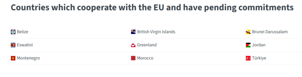 Na toj listi su pored Crne Gore, Turska, Belize, Grenland, Jordan, Britanska djevičanska ostrva, Maroko, Esvatini i Brunej.