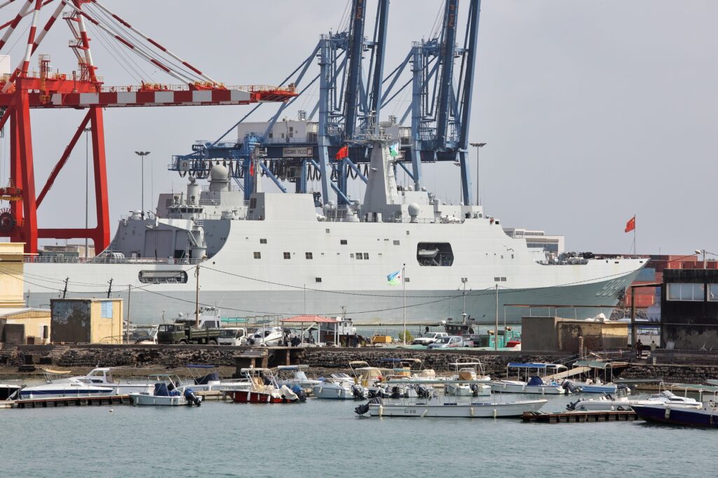 Kina je svoju bazu u Džibutiju otvorila 2017. godine. Za razliku od drugih zemalja, kinesko prisustvo donosi i velika ulaganja u infrastrukturu, u okviru globalne kineske strategije Pojas i put (Belt and Road Initiative – BRI), iako stručnjaci upozoravaju na rizik od tzv. „dužničke diplomatije“. Već 2023. godine Džibuti je kasnio s otplatom kineskog duga, koji je tada iznosio 1,4 milijarde dolara — gotovo polovinu džibutijskog BDP-a.