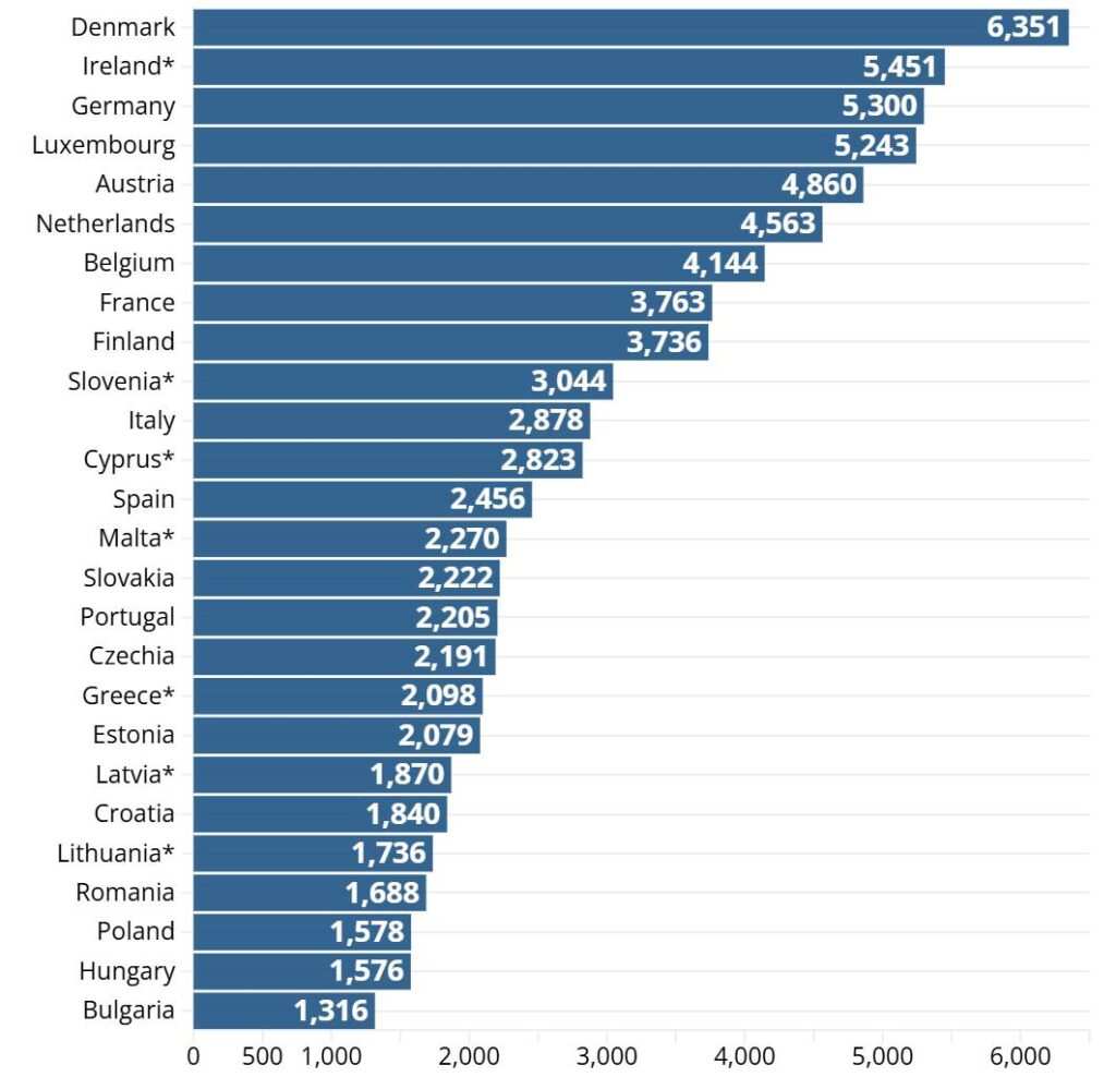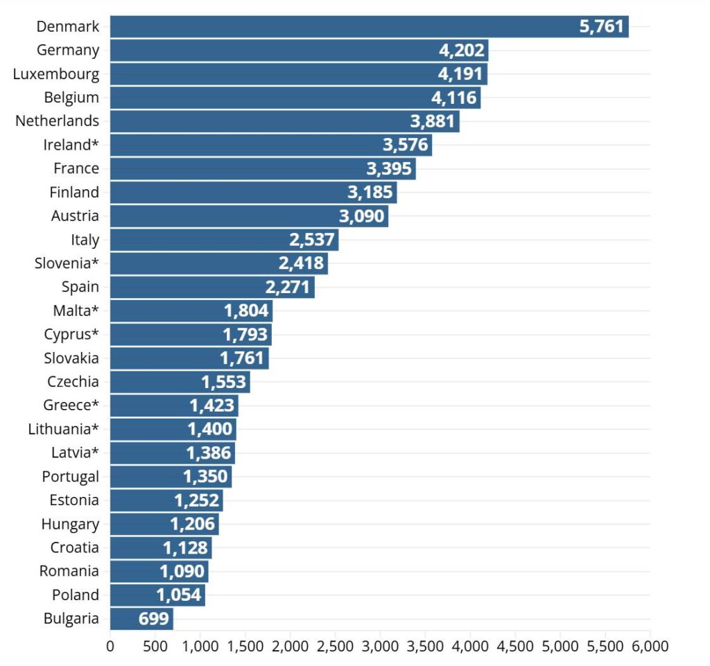 Zanimljivo je kako je u Sloveniji taj iznos čak 2.418 eura, što tu državu smješta na 11. mjesto između Španije i Italije.