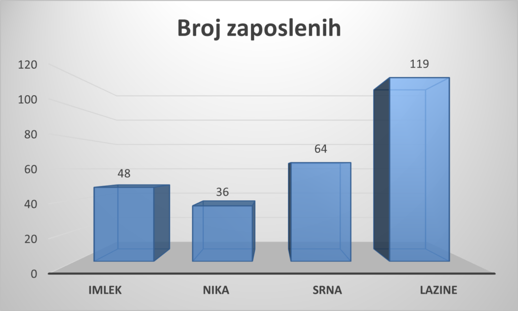 Sa druge strane, tri najveće crnogorske mljekare zajedno zapošljavaju 219 radnika, što je gotovo pet puta više u odnosu na 48 zaposlenih u Imleku Boka.