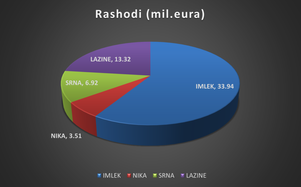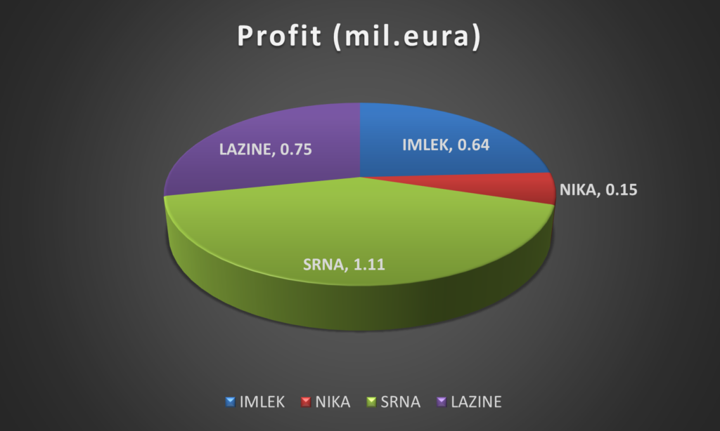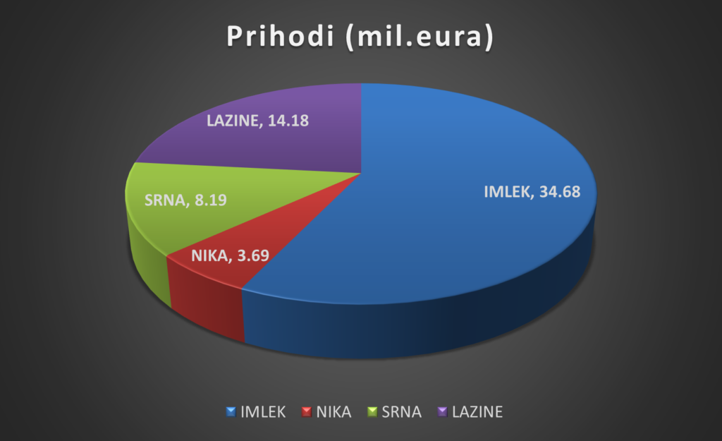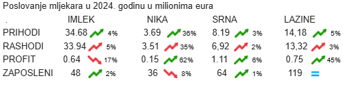 To znači da je Imlek, koji se ne bavi domaćom proizvodnjom, već distribucijom uvoznih proizvoda, imao čak za četvrtinu veći ukupni prihod (24,85%) nego zajedno tri najveće crnogorske mljekare.