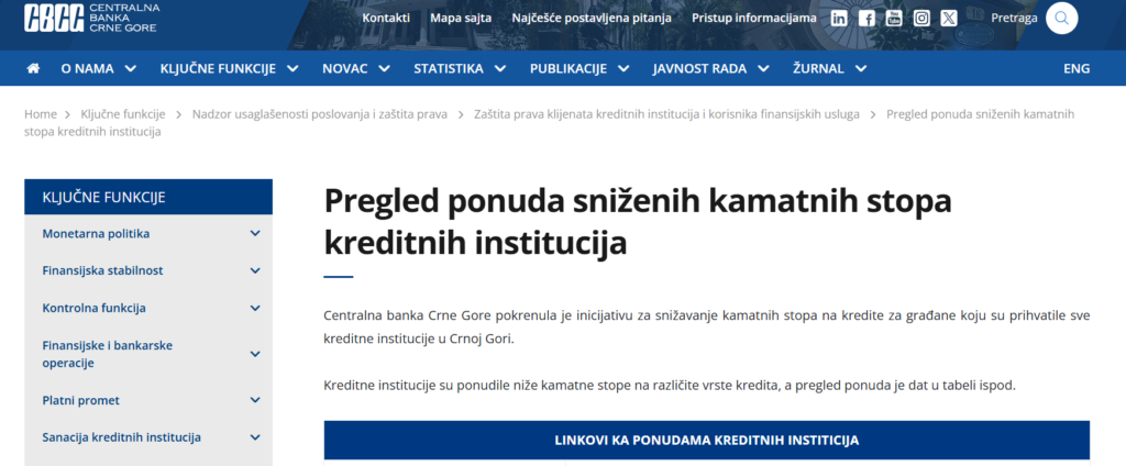 „Ovu vrstu nadležnosti nema nijedna od 27 centralnih banaka Evropske unije. CBCG kontinuirano radi na unapređenju efikasnosti platnog sistema, dostupnosti finansijskih usluga i jačanju zaštite korisnika, dosljedno primjenjući regulatorni okvir zasnovan na evropskim direktivama“, kazala je Kalezić odgovarajući na pitanje da li Centralna banka razmišlja da, po ugledu na Hrvatsku, zabrani komercijalnim bankama naplaćivanje naknade za osnovne usluge korisnicima.
