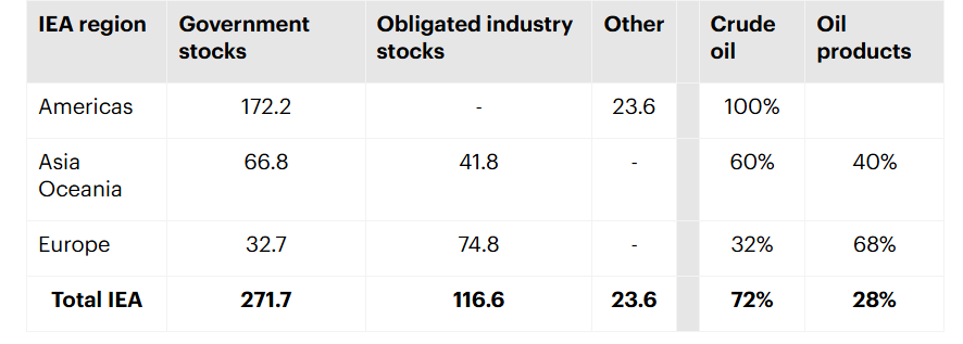 Vlade su se obavezale da stave na raspolaganje 271,7 miliona barela nafte iz državnih zaliha, 116,6 miliona barela iz obaveznih industrijskih rezervi i 23,6 miliona barela iz drugih izvora, navodi se.