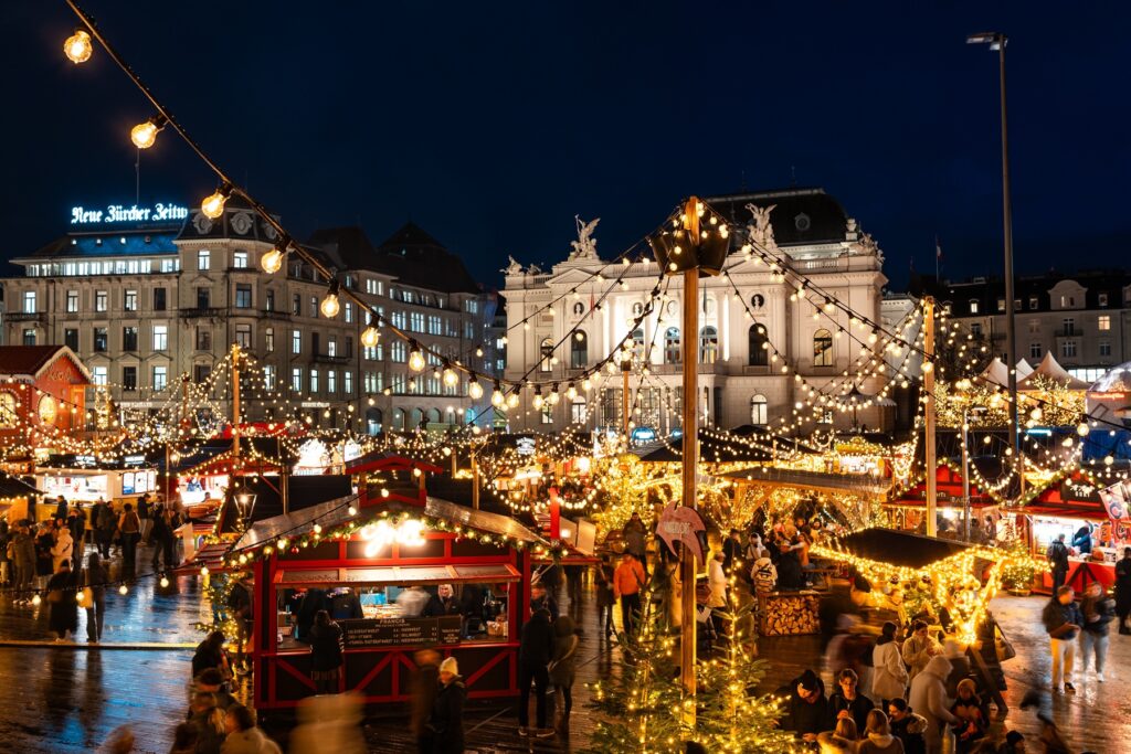 Vrhunac sezone je Vinahtsdorf (Wienachtsdorf) na Zekselojtenplacu (Sechseläutenplatz), svjetleće okupljanje dizajnerskih štandova, švajcarskog zanatstva, kupola sa fondijem (švajcarsko jelo sa topljenim sirom) i veličanstveno božićno drvce pored jezera.