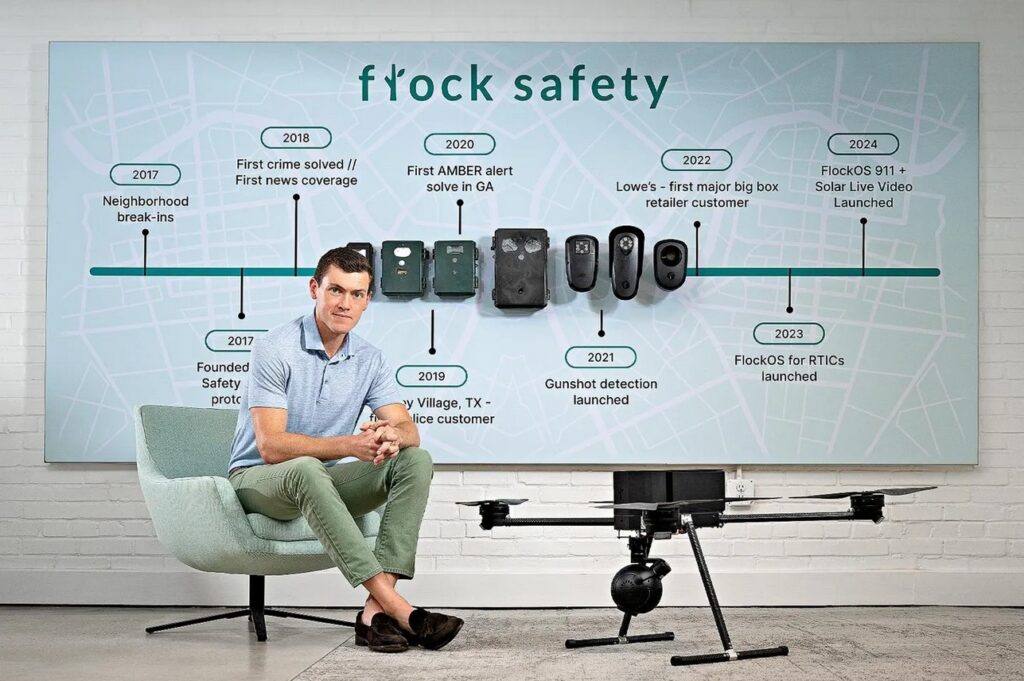 Sa više od 80.000 kamera na vještačku inteligenciju širom SAD, Flok Sejfti (Flock Safety) postao je jedno od glavnih sredstava policijskog nadzora i kompanija vrijedna 7,5 milijardi dolara. Sada generalni direktor Geret Lengli (Garrett Langley) ima u planu da se suprotstavi i američkom policijskom tehnološkom gigantu Axon i kineskom proizvođaču dronova DJI, na svom putu ka cilju koji zvuči plemenito (ali gotovo sizifovski): sprečavanje svakog zločina u SAD.